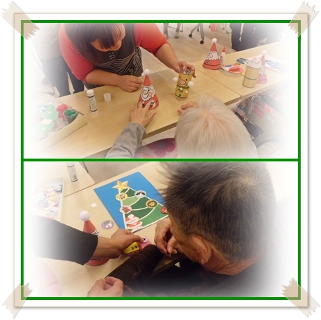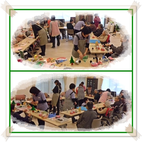 今日は手芸の日で希望の方が参加され クリスマスの飾りをいろいろと