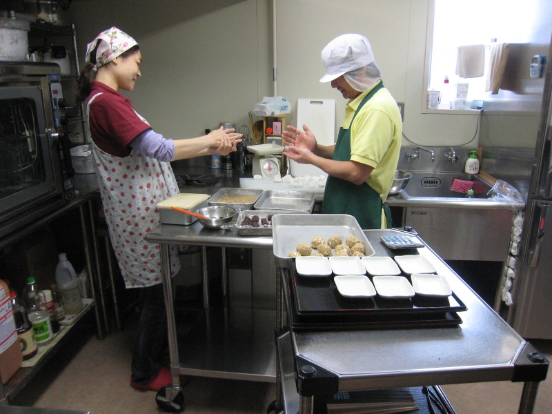 寒い日は温かいスイ~ツ(宇部あいおい苑) 2011.12.16 日誌 今日は宇部でも朝から雪が降っていました。寒い日のおやつは温かい物がいいですよね^-^ さてこれは何でしょう??? こねてこねて~、まぶしてまぶして~ こんな感じで楽しく作って、じゃじゃじゃじゃ~ん! 芝麻球の出来上がり~!(←なんて読むかわかりますか?) 寒い日は温かいスイ~ツで、心も体もあちちちちちち・・・・・・・ 前後の記事 最新記事へ また忘年会 古い記事へ 忘年会