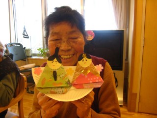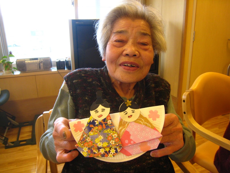 さて、もうすぐ3月ですね。3月と言えばお雛様、雛祭りですね。宇部あいおい苑では毎年手作りのお雛様を作っていましたが、今年作ってみて気付いた事。それは制作者に似ている?こと・・・。今まで何年も作ってきましたが、今年のお雛様を見てびっくりしましたので、いくつか載せてみますね。制作者とお雛様をよーく比べて見て下さい。飼っているペットはよく飼い主に似ると聞きますが、お雛様まで似るんですね~。