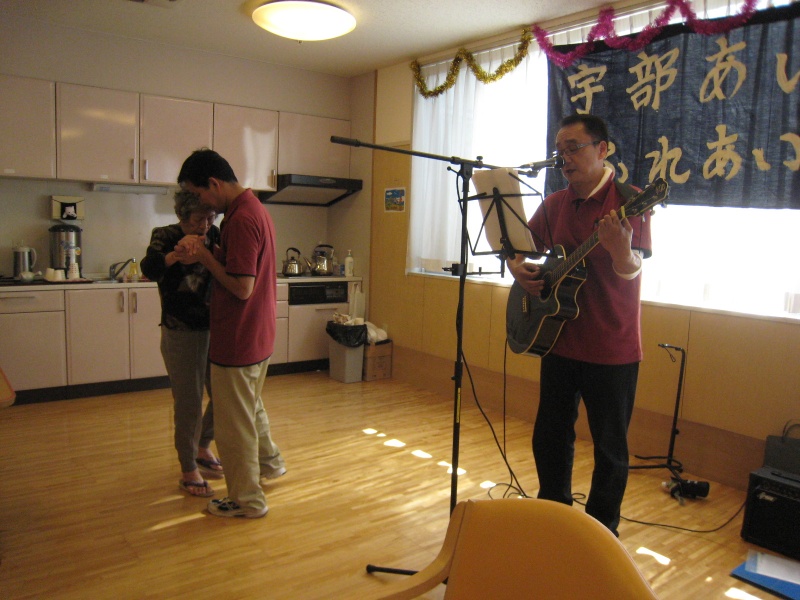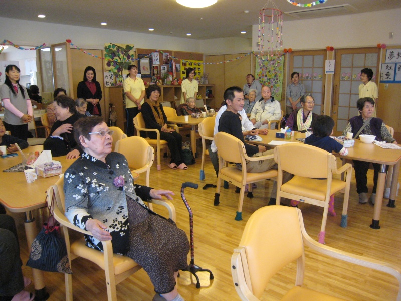 いよいよお待たせの催し物の時間!あれ!?この人もどこかで見たような?急遽ピンチヒッターで登場してもらいましたが、流石。すぐに皆さんを引きつけるようなステージに!!!ここちよい音楽につられ、ついつい踊ってしまう人もいらっしゃったり・・・。次の日に「人前で踊ってしまって恥ずかしいから、デイサービス休もうかなぁ」と電話がありましたけどね。大丈夫!恥ずかしくなんかありません!これからも活躍の場を作りますよ。