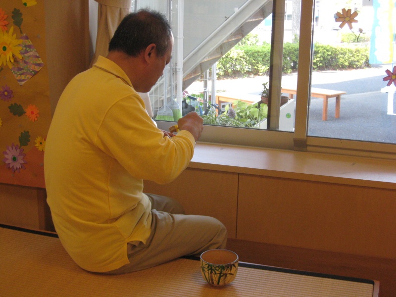 今年はお米やリンゴもあって、美味いに安いときたもんだから、私も狙っていたのですがあっという間に完売!完売に乾杯!(ってまた・・・)そして、これまた毎年恒例の山本先生によるお抹茶コーナー!1人こっそりと楽しんでいるこの人は誰でしょう・・・。ん?