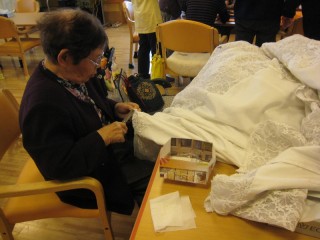 まったく統一性のないこの2つ、いったい何がどうなっているのか、さっぱりわかりません!同じ物を作っているんではないのでしょうね。かと思いきや、丸い物も出現して、とうとう着せようとしているようですが・・・。