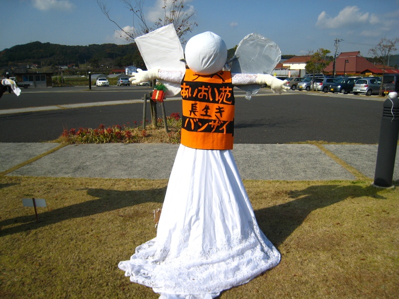 実は宇部あいおい苑は今回、案山子コンテストに参加しました!優勝出来ると思いますか?この宇部あいおい苑のゲゲゲの案山子に会いたい方は楠町のこもれびの郷に行かれると会う事ができます。どの案山子が宇部あいおい苑のだっけ?と思われた方、後ろに回って見て下さい。