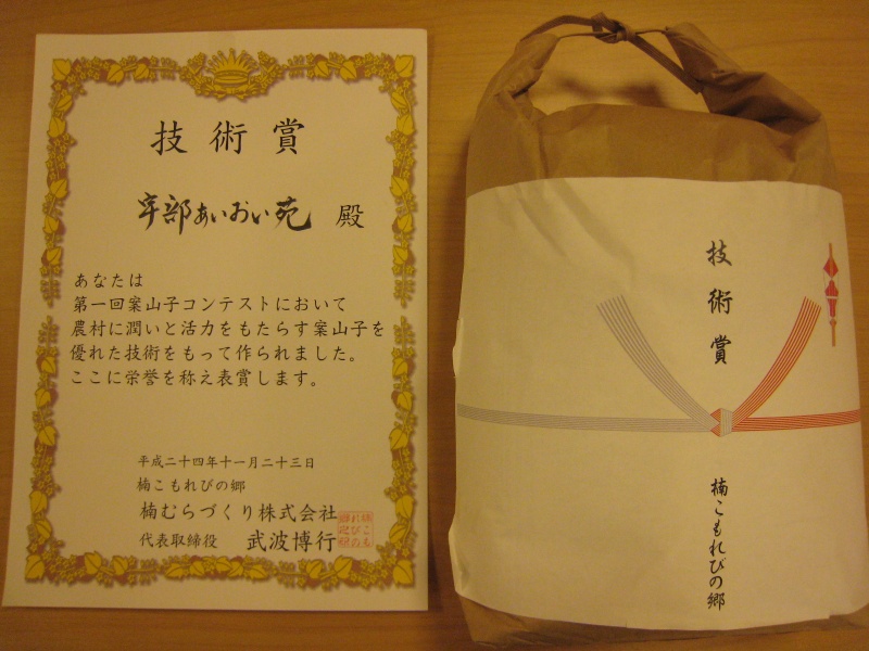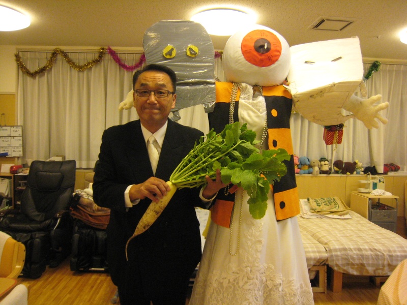 結婚式のBGMはこの方に担当してもらいました。・・・と、冗談はここまでにして、宇部あいおい苑がこの度初めて参加した案山子コンテスト、なんと!ななんと、技術賞を頂く事ができました!賞品のお米5キロは皆さんでおむすびにしていただく予定にしております。ご協力いただいた方々、どうもありがとうございました。