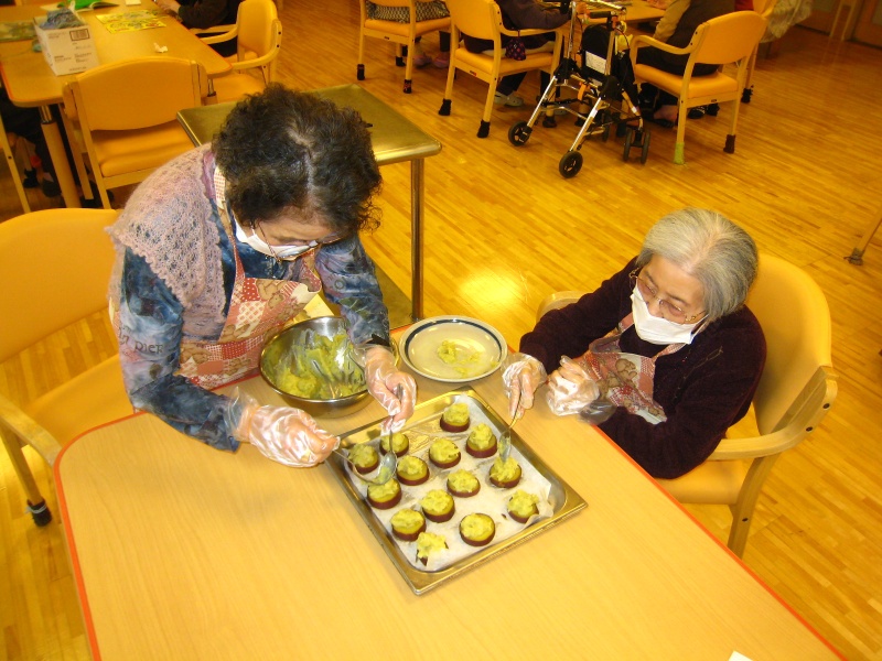 宇部あいおい苑では、東京で修業した(?)専属パティシエがついて、利用者様と一緒にお菓子作りにチャレンジしています。