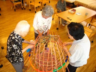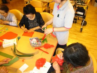 早速、ホールでは、利用者様がワイワイガヤガヤ準備に取り掛かっています。今日は、その製作風景を・・・・