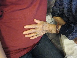その温かな手は、当苑で働く女性職員のおなかの上に・・・・