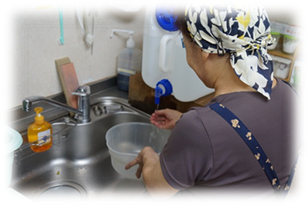 現在は、親切なご近所の方から水を提供していただき、またデイサービスの裏の井戸水と、他事業所等の協力も得ながら持ちこたえている状況です。