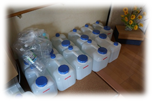 入居者さまの清拭、洗濯、手洗い等など・・・数時間のうちに、頂いたポリタンクの水が、一つ、また一つと空っぽになっていきます。