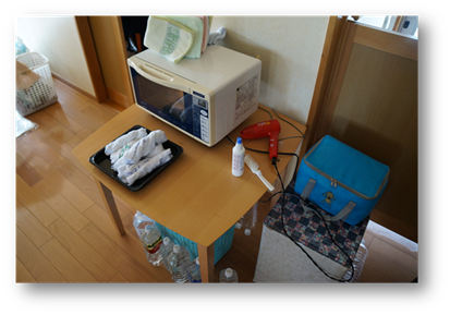 ポットでお湯を沸かし、タオルを浸し、それを使って体を拭き、