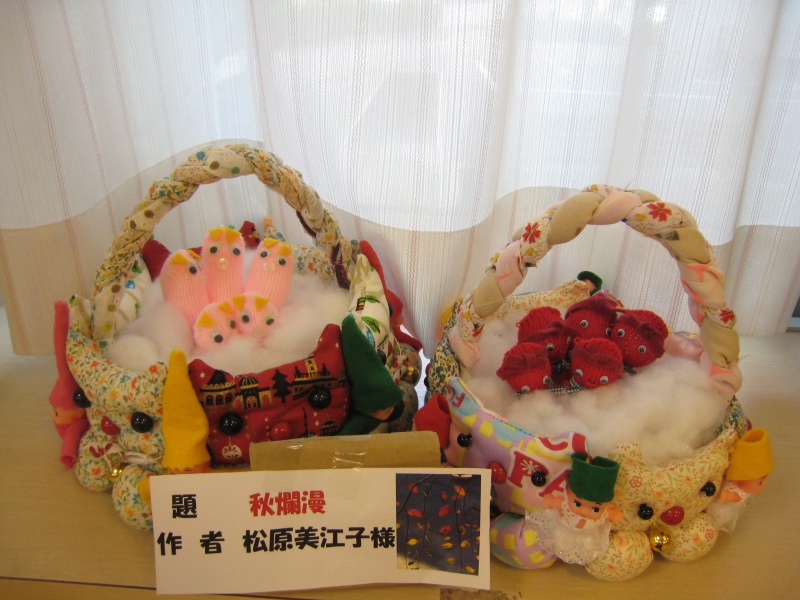 ホールには、利用者様の手作りの作品の数々がずらり・・・