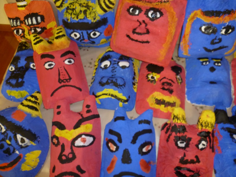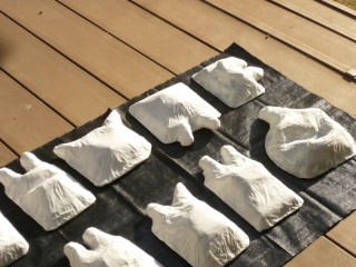 トレイと新聞玉で土台(骨格)作りから・・・。