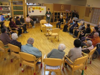 恒例の節分祭【宇部あいおい苑】 2014.02.04 日誌 今年も節分祭を盛大に開催しました。利用者様は豆にちなんだゲームに大はしゃぎ。 今年もマメマメしく健康でいられますように・・・。 前後の記事 最新記事へ 鬼が来るぞぉ~ 自由の杜 古い記事へ 節分クイズ~(^▽^)ノ 【徳地あいおい苑】