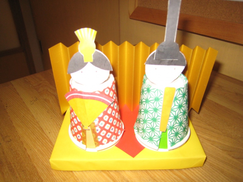 皆さん、「ああじゃない、こうじゃない」など、色々喋りながら、見事なひな人形が完成。