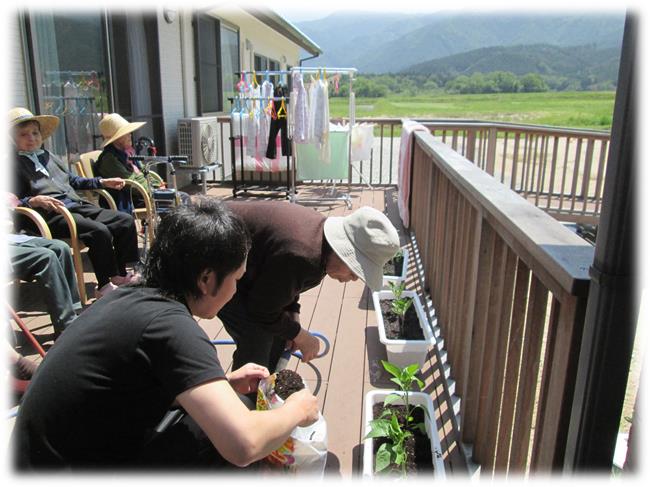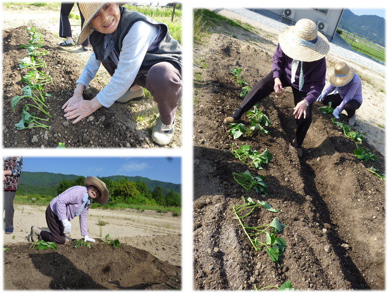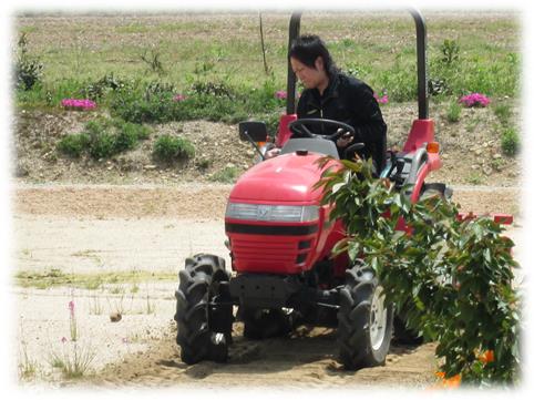 苑長、職員力を合わせて、真砂土を掘り返し、