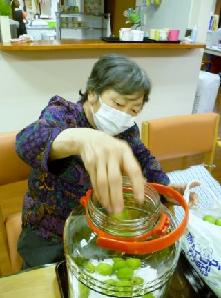 6月21日。入居者のご家族様から梅を頂きました。