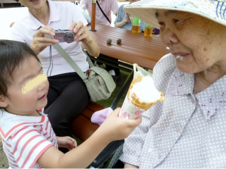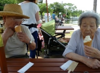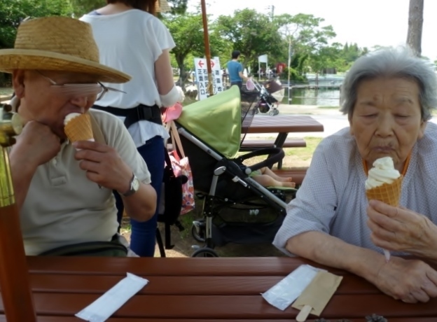 散策の途中、親子でソフトクリームを食べられている姿や、