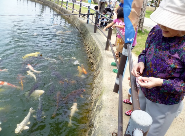 この日は、お弁当の後は、池の鯉に餌をやったり。ペリカン池にペリカンに会いに行ったりと、グループに分かれて園内の散策♪