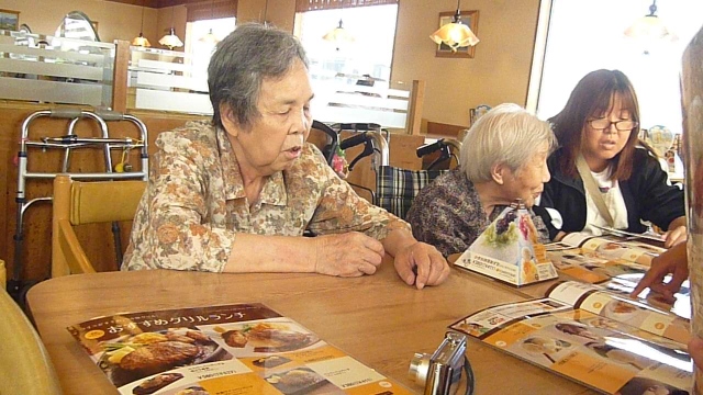 皆さんメニュー(デザート)選びに真剣!「どれがえかろうか。」「どれにしちゃった?」「これは多かろうか?」