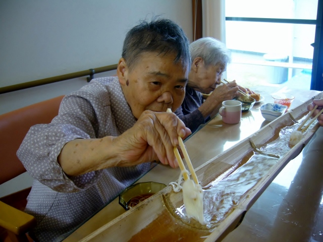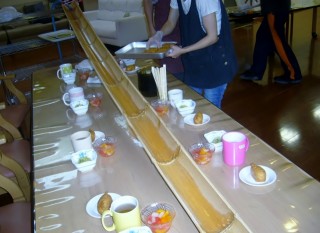 竹と素麺の組み合わせと言えば・・・あれですね(^^)あれ。 はい♪ そうめん流しです。
