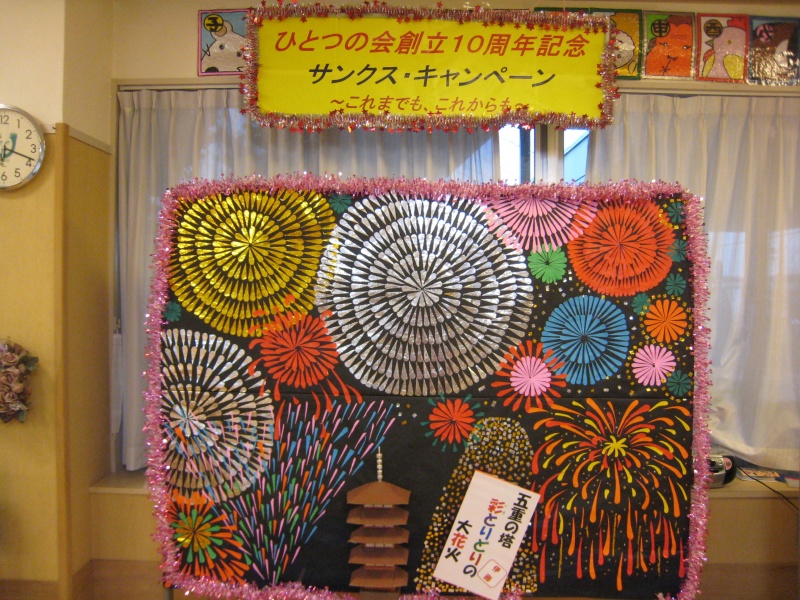 利用者様が丹精に作られた夜空を染め抜く大きな花火アート。