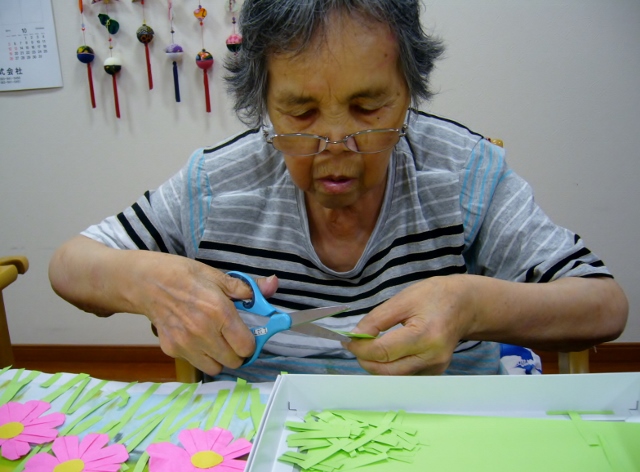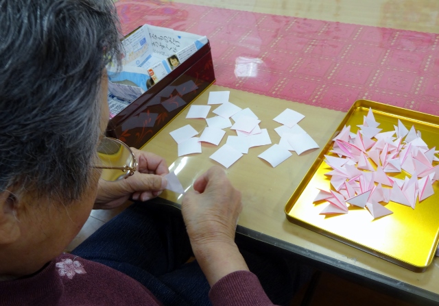 「難しそうなねぇ~」 「難しかったらやらんよ!」と、【花びら】を折り始め・・・