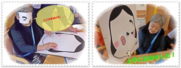 新年会、みんなで福笑い!思いっきり笑いましたヽ(*´∀`)ノ