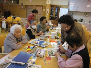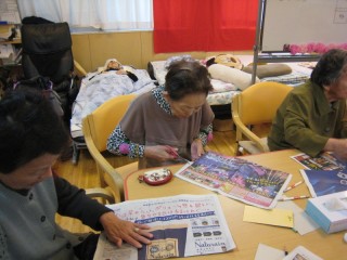 多くの利用者様が参加され、笑いながら、思い思いのコサージュを作られてました。