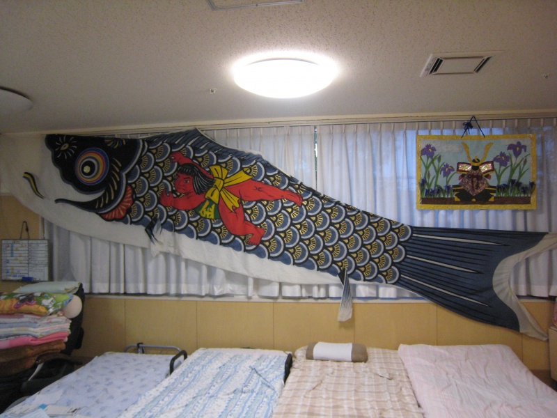 ここ宇部あいおい苑にも大きな鯉のぼりが気持ちよさそうに泳いでいます。