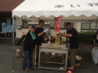 今年は佐野代表三人衆を中心に肉イカ焼きそばに挑戦!!ボリューム満点・味も良し、自信満々の我らの隣にライバル現る、、、お好み焼きだぁ~。お隣さんも例年のたこ焼きに変えてお好み焼きで勝負を挑んできたぁ、我らは若干の作戦変更を経ていざ勝負!!!