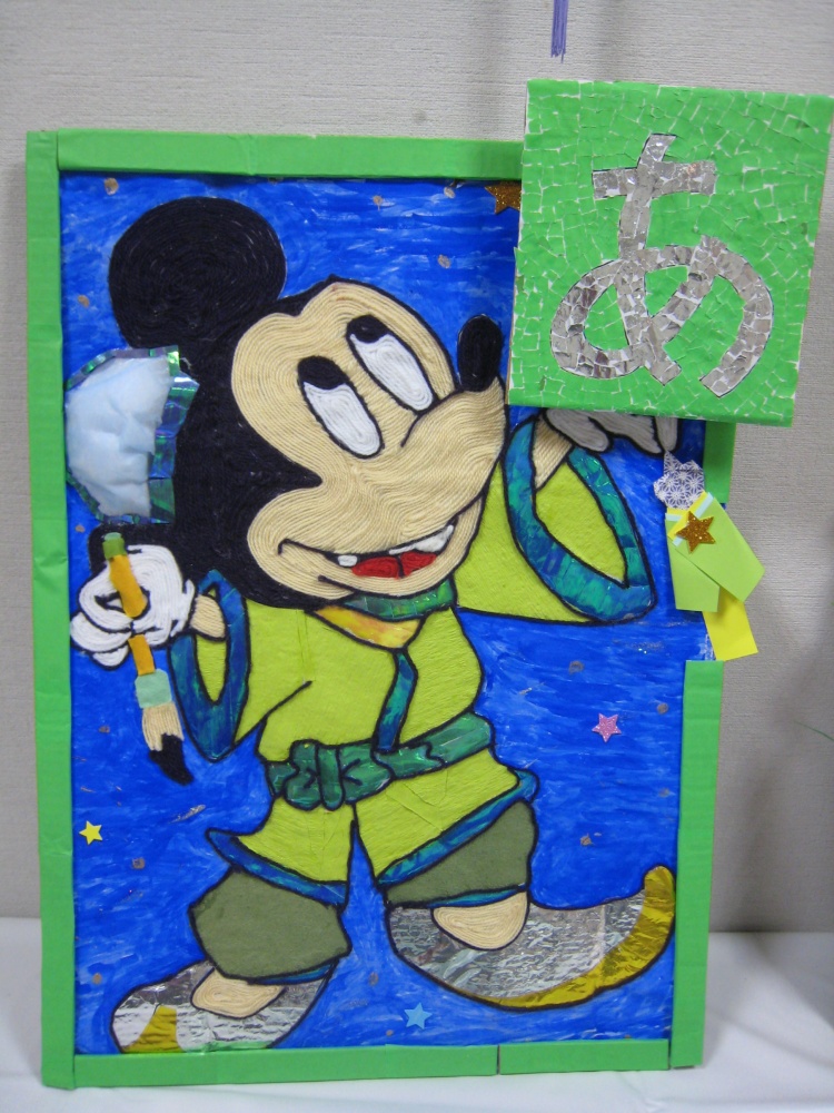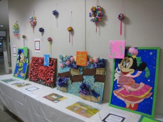 デイサービスの利用者様が丹念に作り上げた作品が所狭しと並んでいました。