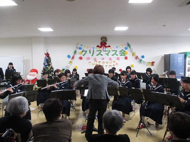 午後は、クリスマス会!右田中学校吹奏楽部によるクリスマスコンサートでした!迫力ある演奏が聞けて素敵なクリスマスとなりました。