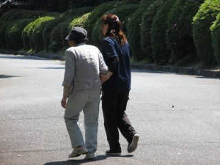 ちょっと歩いてみましょうと、車椅子を降りて職員と二人で歩いて散策してみたり(^^♪