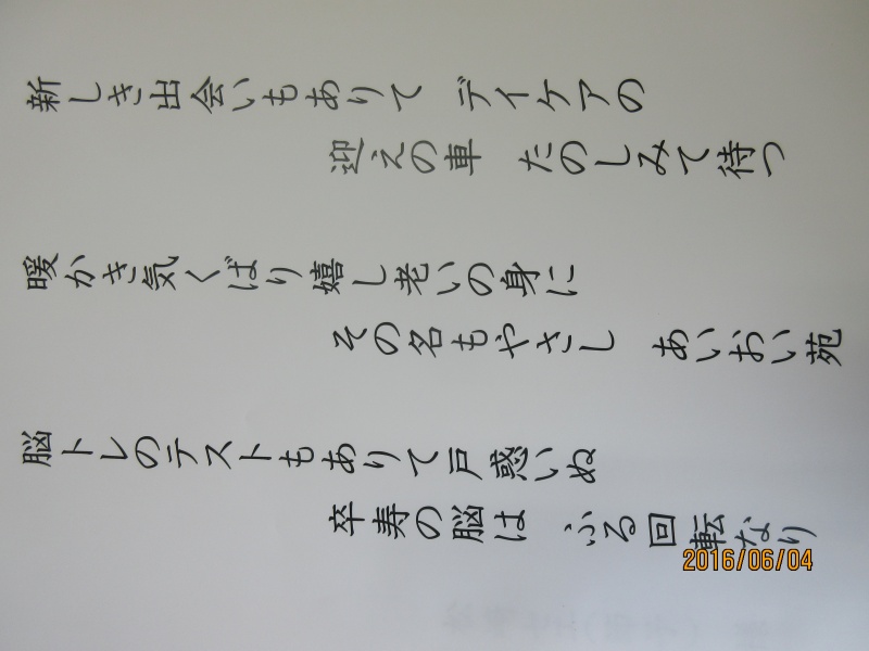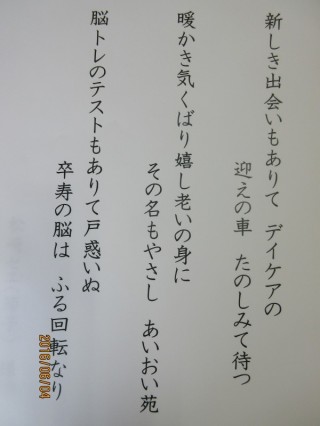 その利用者様が、このたび、今の気持ちを短歌にしたためられ、お持ちいただきました。