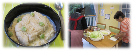 料理レクは、皆さんで一緒に作ること、野菜を切る音、美味しそうな匂い…