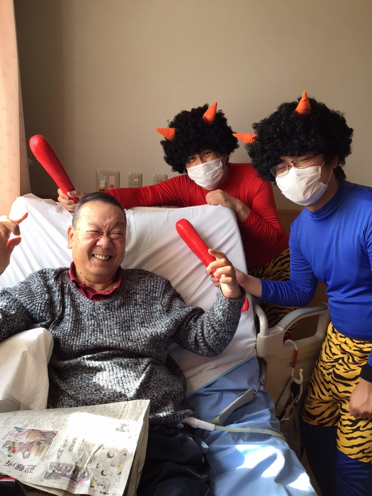 新人スタッフなどが鬼に扮して豆まきを実施しました♪