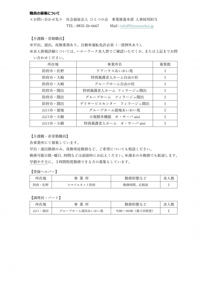 ひとつの会の各事業所で職員を募集しています。