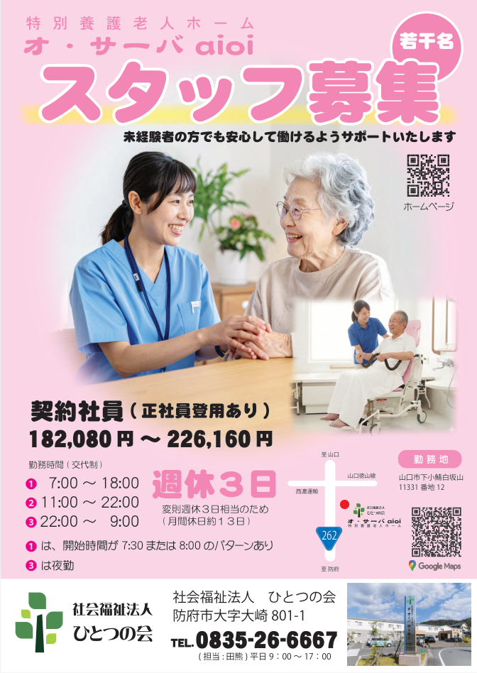 TEL : 0835-26-6667 Mail : info@hitotsunokai.jp