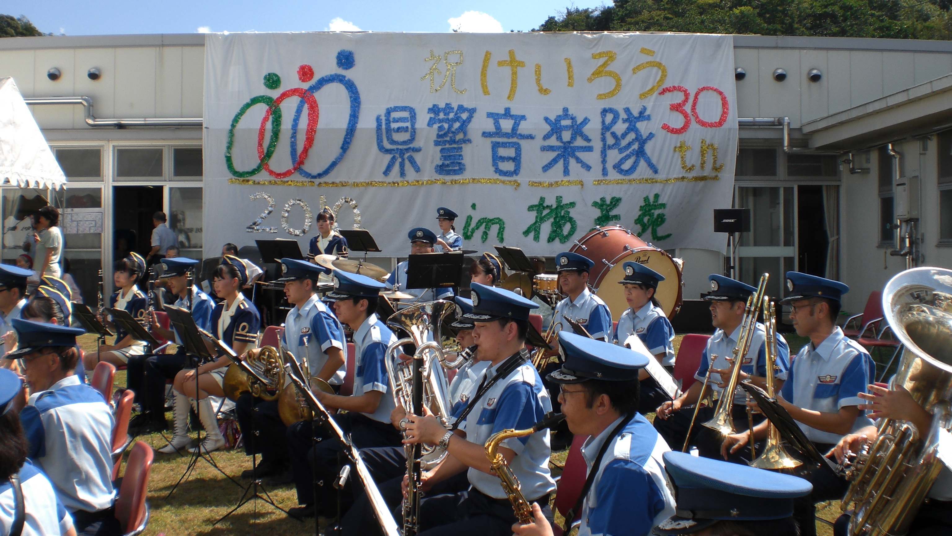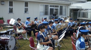 姉妹施設の特別養護老人ホーム梅光苑に、今年も県警音楽隊に来ていただきました。