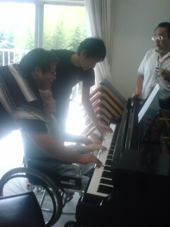 おじいちゃんが手を伸ばし一緒にピアノを弾いてくれたのです。
