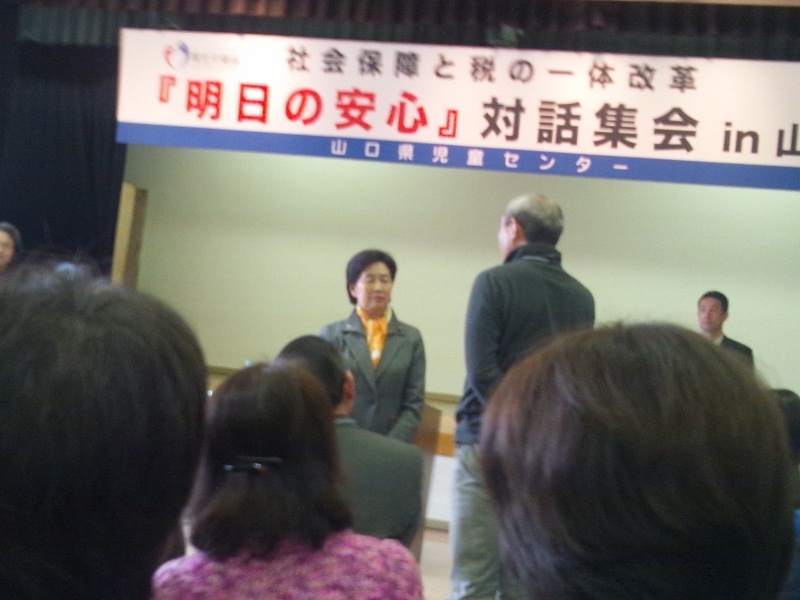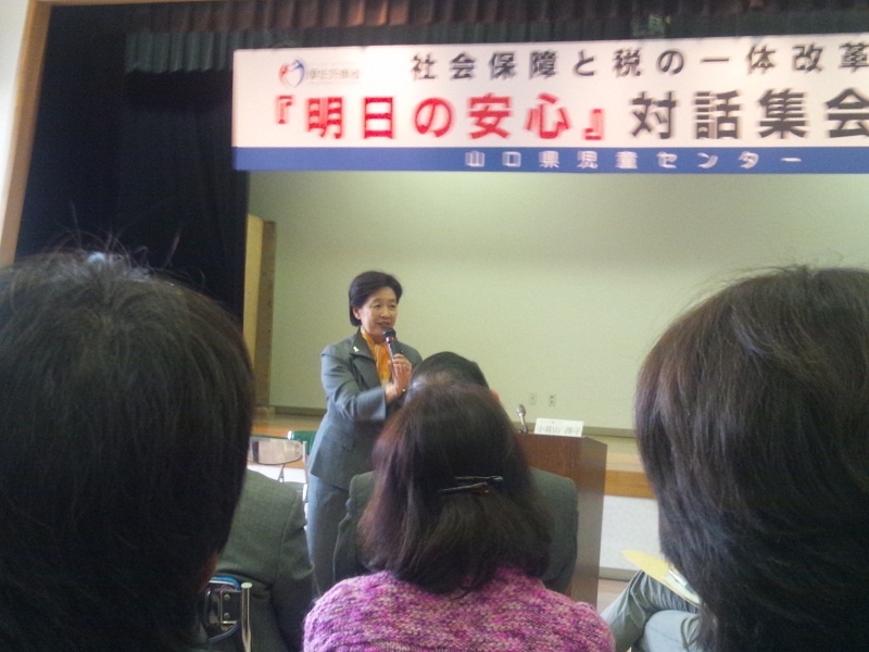 本日、山口市で小宮山厚生労働大臣とのフリートークができる会に参加した。